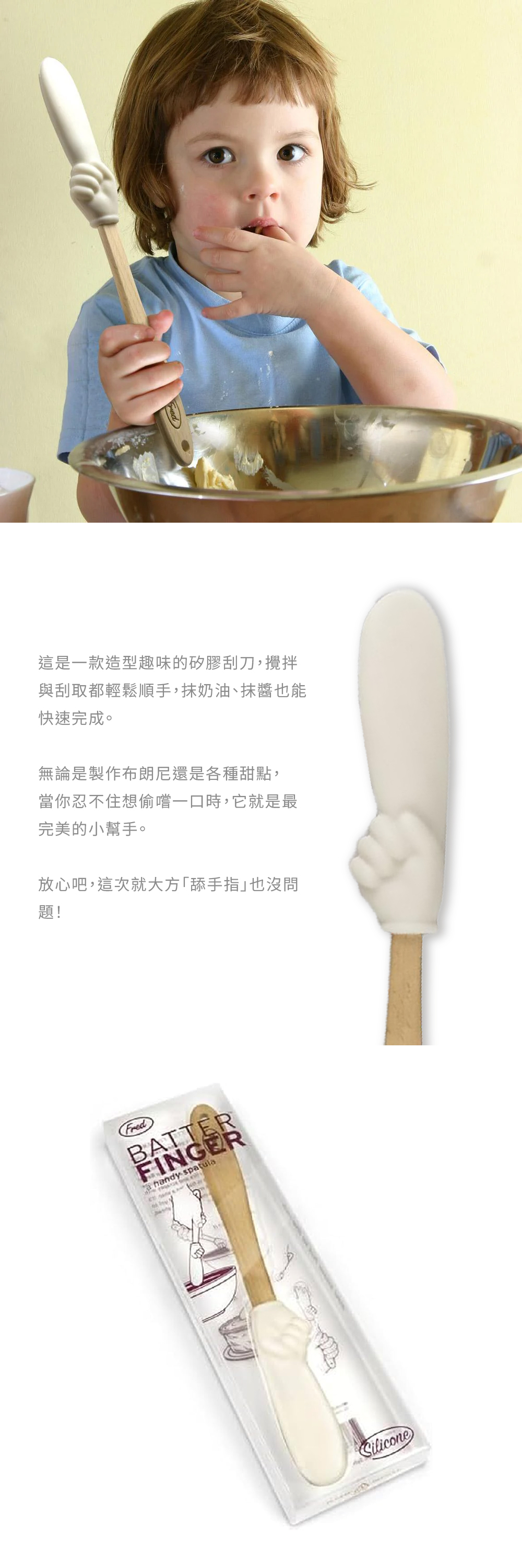- 造型如放大手指的趣味矽膠刮刀