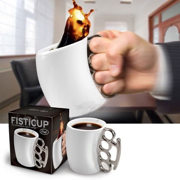 獨特金屬指虎手柄的馬克杯為你的日常生活帶來一點幽默感。